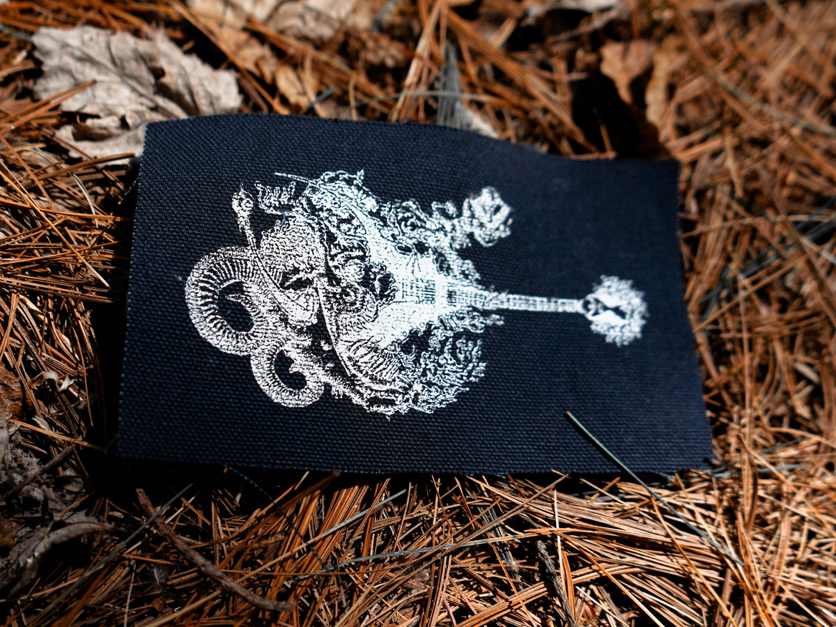 Support bands all around the world and our mission when spreading the word through our patches on your battle vests. Free stickers are included with this purchase! White ink on a black based denim fabric.
